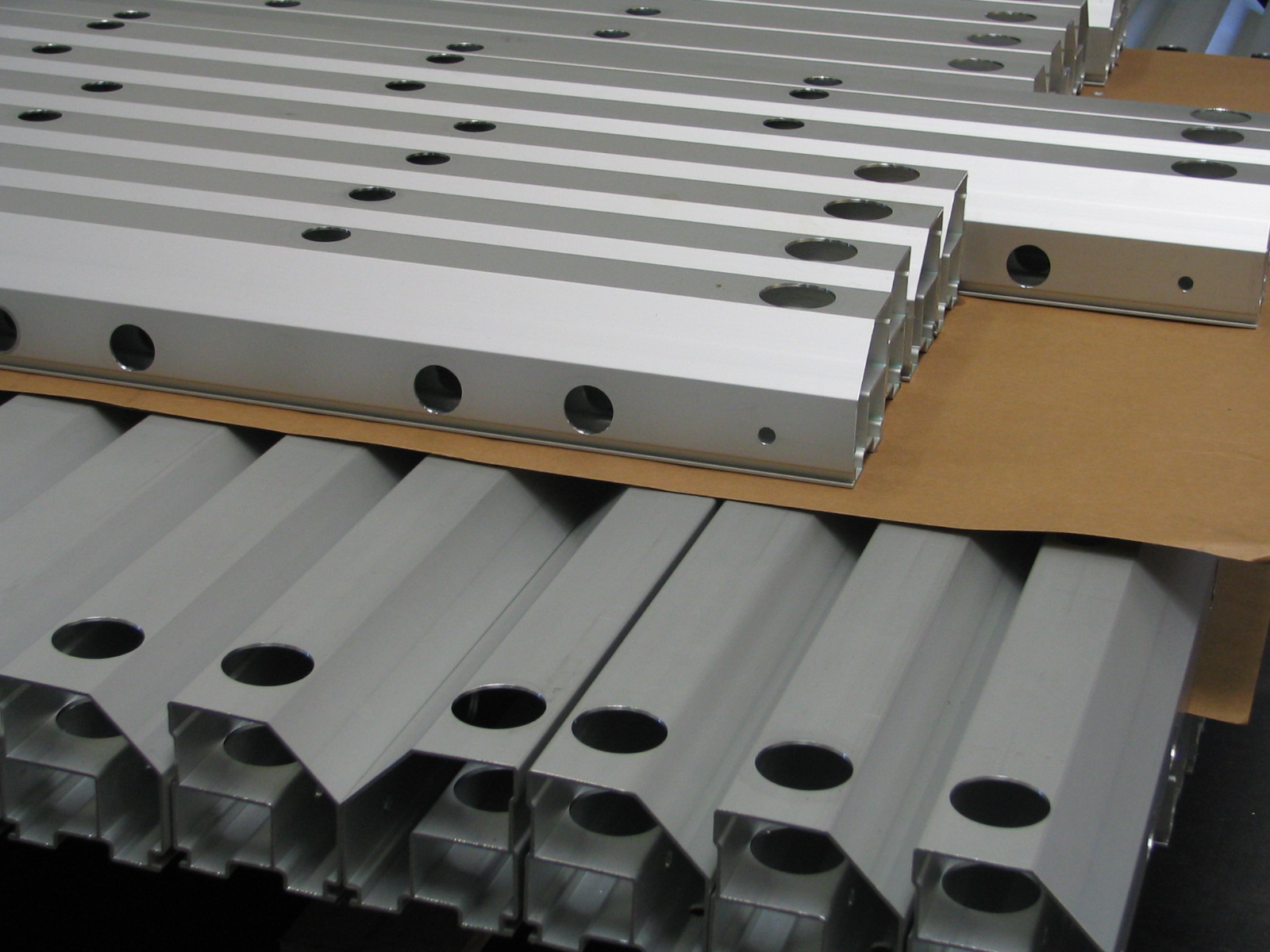 | Utilizing CNC equipment , and innovative, multiple fixturing techniques , we shorten cycle times, thus lowering part cost. We also can design extruded shapes to eliminate machining from a solid or significantly reduce the processing steps to a finish product |